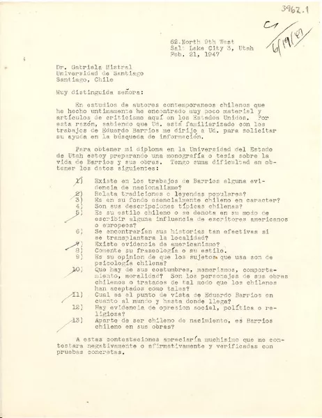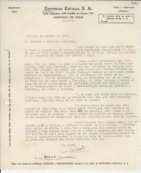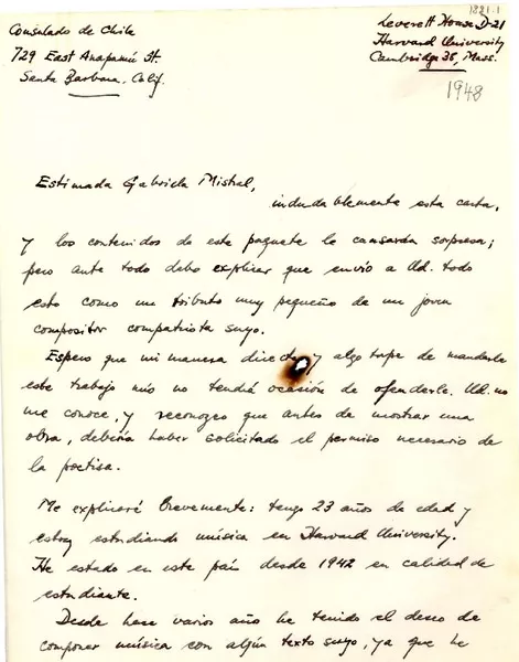 [Tarjeta] 1947 abr. 2, [Valparaíso, Chile] [a] Gabriela Mistral, Monro...