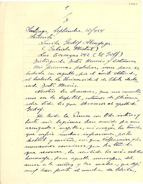 [Descendiente directo de españoles...] [manuscrito] Fernando Santiván.