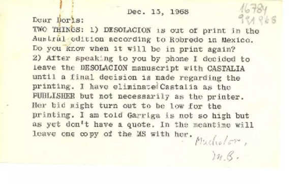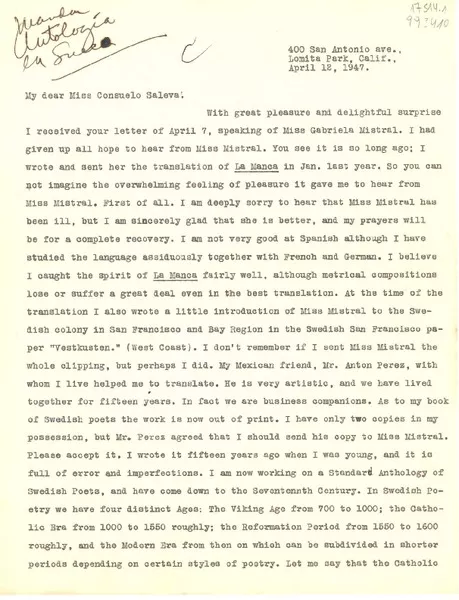 [Carta] 1949 oct. 3, Los Ágeles, California [a] Gabriela Mistral, Méxi...