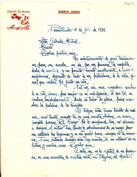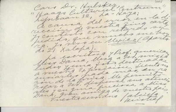[Carta] Xalapa, México [al] Dr. Hulsker, La Haya, [Holanda] [manuscrito] Gabriela Mistral.
