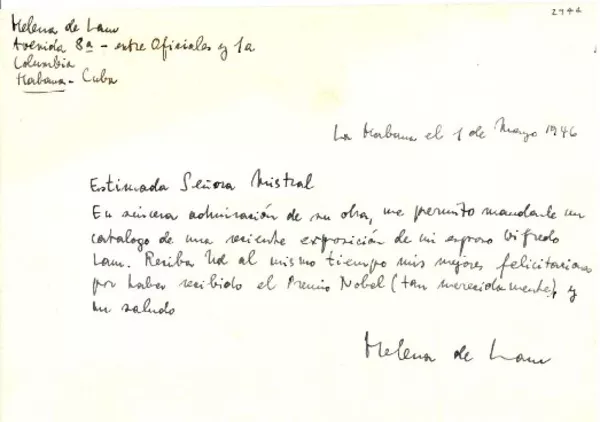 La ruta [manuscrito] [Gabriela Mistral]. [21] h. ; 28 cm.