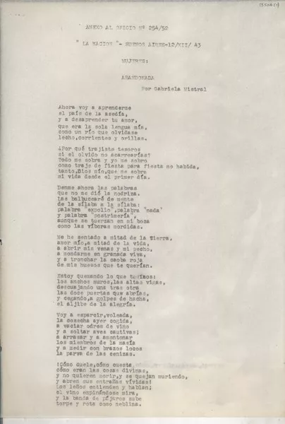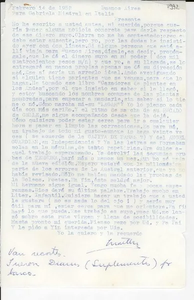 [Carta] 1954 abr. 22, Santiago, [Chile] [a] Gabriela [Mistral] [manus...