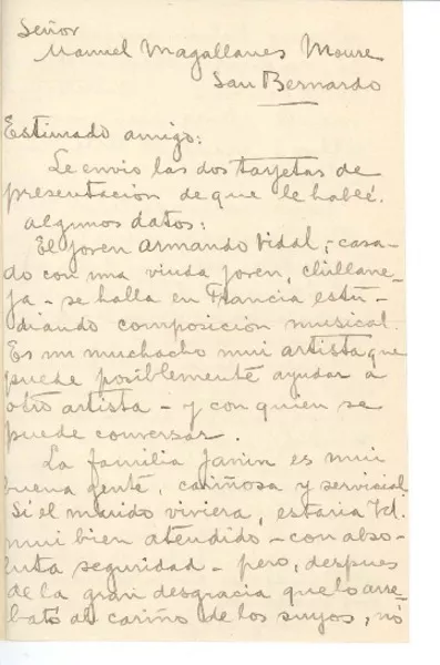 [Carta] c. 1920, Santiago, Chile [a] Manuel Magallanes Moure [manuscr...