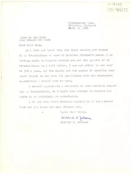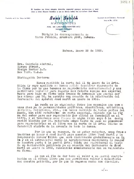 [Carta] 1955 ene. 20, Habana, [Cuba] [a] Gabriela Mistral, Spruce Stre...