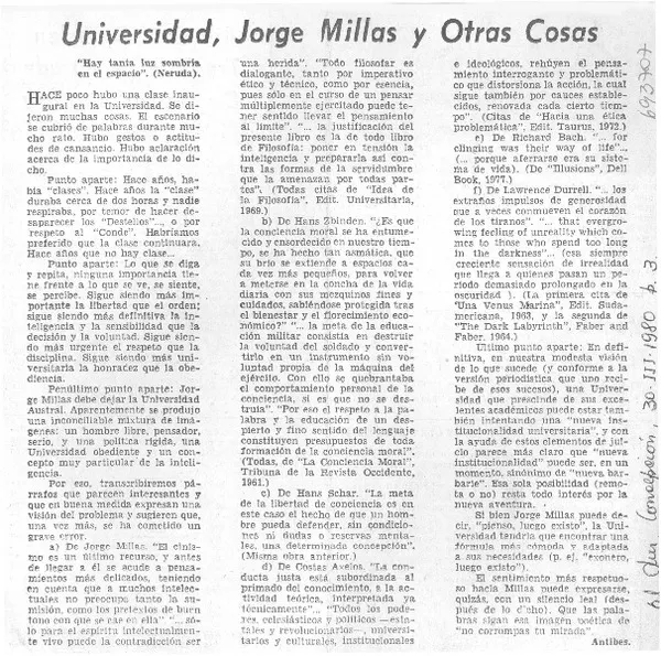 Universidad, Jorge Millas y otras cosas [artículo] Antibes.