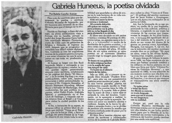 Gabriela Huneeus, la poetisa olvidada [artículo] Rubén Concha Arenas.