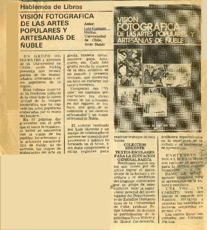 Visión fotográfica de las artes populares y artesanías de Ñuble. [artículo]