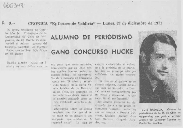 Alumno de periodismo gano concurso Hucke. [artículo]