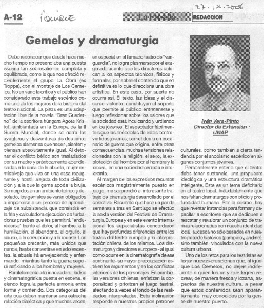 Gemelo y dramaturgia [artículo] Iván Vera-Pinto.