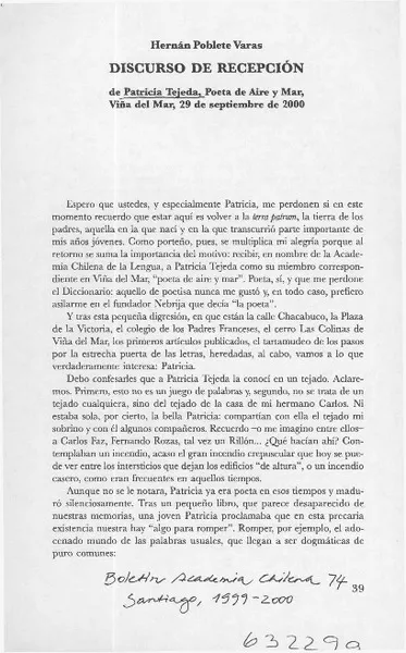 Discurso de recepción [artículo] Hernán Poblete Varas