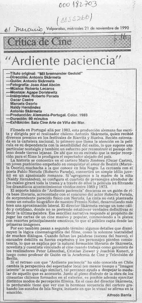 "Ardiente paciencia" [artículo] Alfredo Barría.