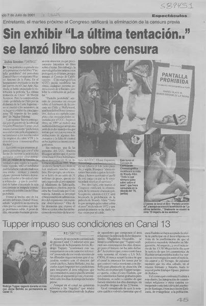 Sin exhibir "La última tentación" se lanzó libro sobre censura [artíc...