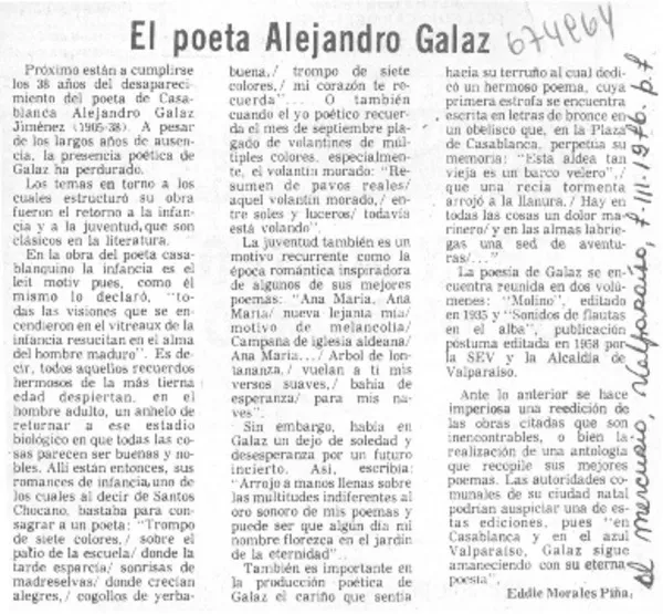 El poeta Alejandro Galaz [artículo] Eddie Morales Piña.