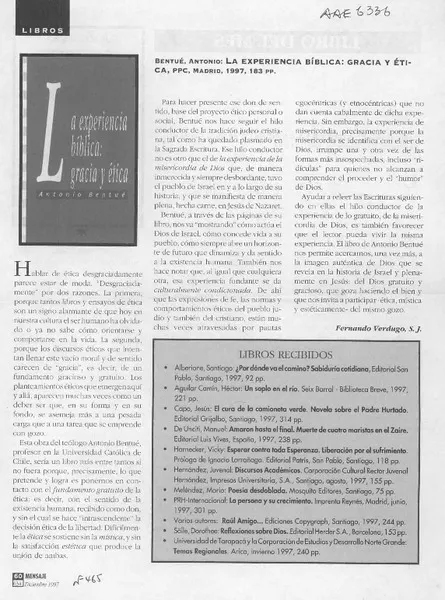 La experiencia bíblica, gracia y ética [artículo] Fernando Verdugo S....