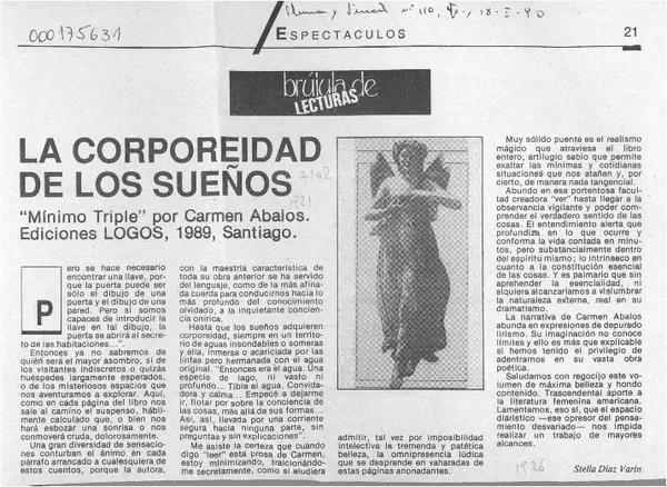 La corporeidad de los sueños [artículo] Stella Díaz Varin. retr.