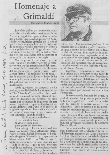 Homenaje a Grimaldi [artículo] Marino Muñoz Lagos.