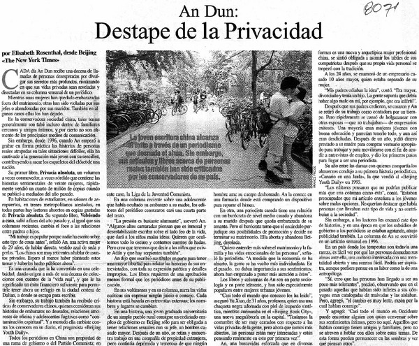 Destape de la privacidad [artículo] Elisabeth Rosenthal.