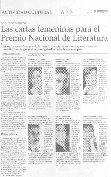 Las cartas femeninas para el Premio Nacional de Literatura [artículo]...
