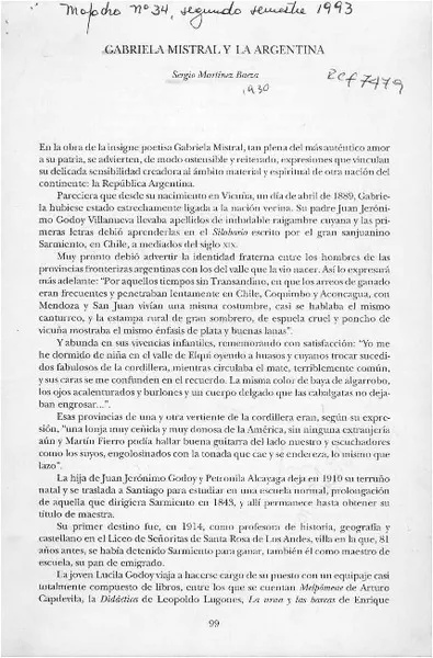 Gabriela Mistral y la Argentina [artículo] Sergio Martínez Baeza.