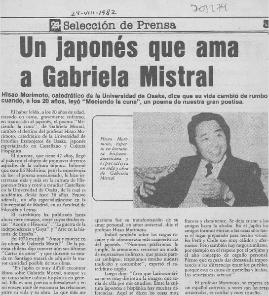 Un japonés que ama a Gabriela Mistral. [artículo]