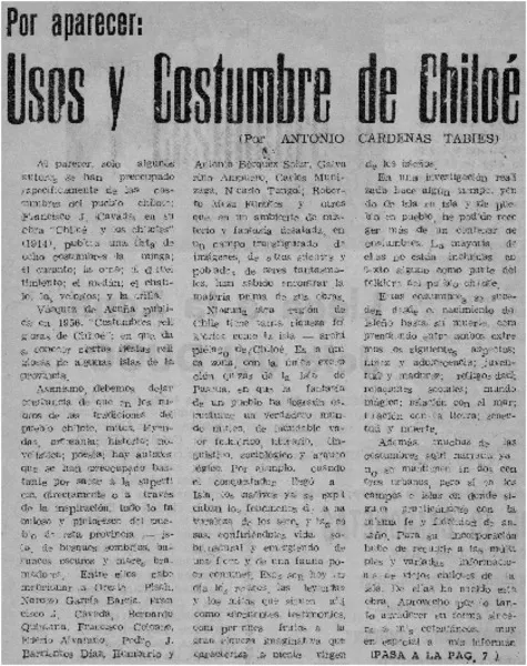 Usos y costumbres de Chiloé [artículo]A.C.T.