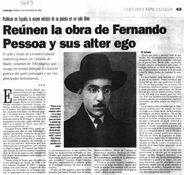 Reúnen la obra de Fernando Pessoa y sus alter ego [artículo] A.G.B. r...