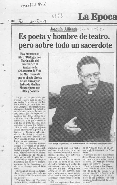 Es poeta y hombre de teatro, pero sobre todo un sacerdote [artículo]....