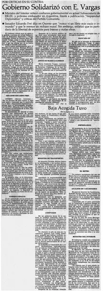 Gobierno solidarizó con E. Vargas. [artículo]