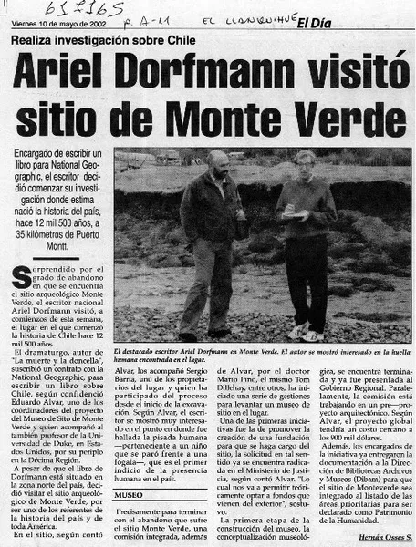 Ariel Dorfman visitó sitio de Monte Verde [artículo] Hernán Osses S. ...