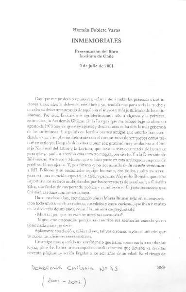Inmemoriales [artículo] Hernán Poblete Varas.
