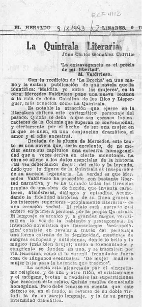 La Quintrala literaria [artículo] Juan Carlos Colville.