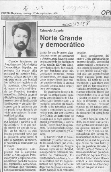 Norte Grande y democrático [artículo] Eduardo Loyola. retr.