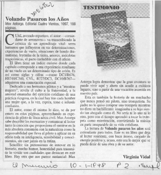 Volando pasaron los años [artículo] Virginia Vidal. il.
