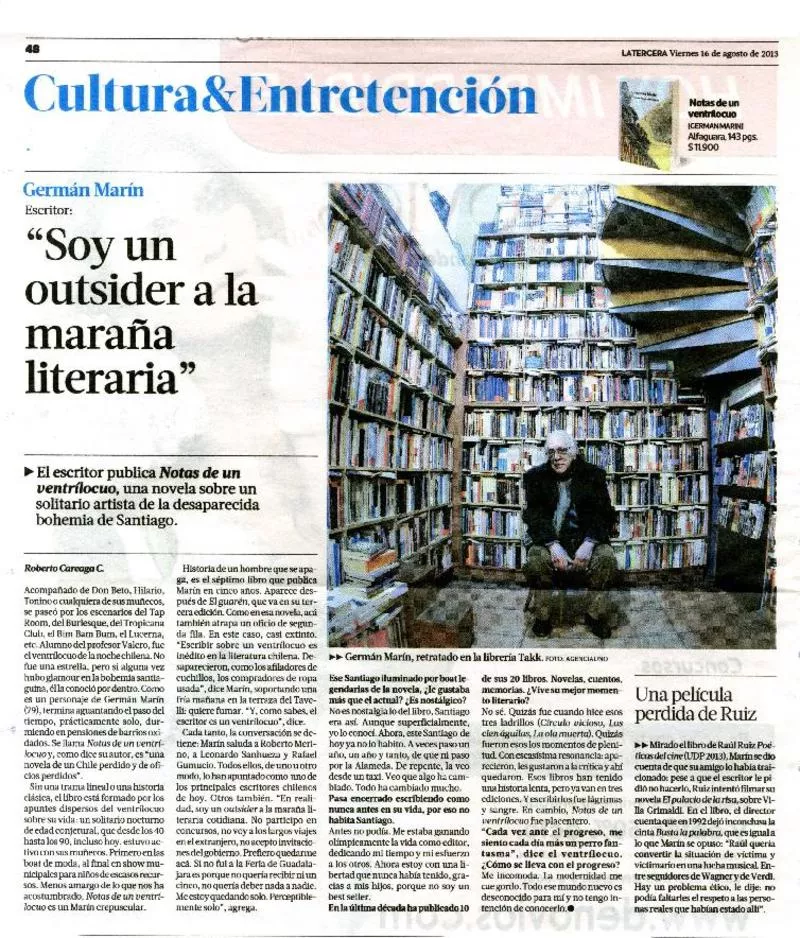 "Soy un outsider a la maraña literaria" [artículo] Roberto Careaga C.