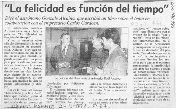 "La Felicidad es función del tiempo" [artículo]. retr.