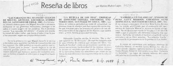 Reseña de libros [artículo] Marino Muñoz Lagos.
