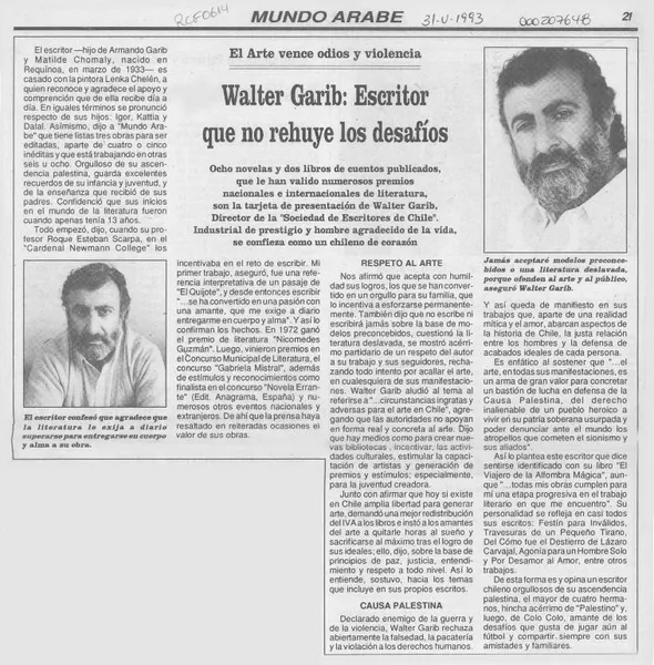 Walter Garib, escritor que no rehuye los desafíos [artículo]. retr.