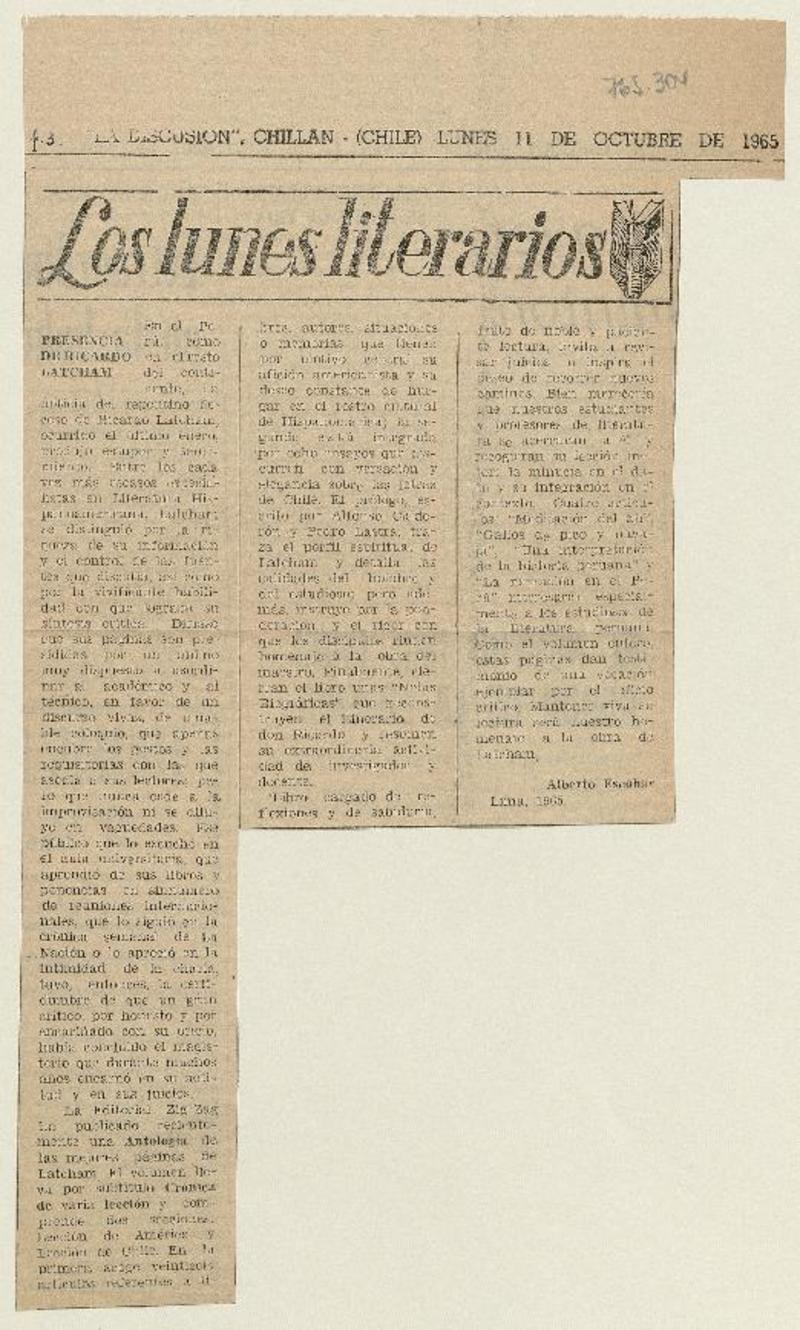 Presencia de Ricardo Latcham [artículo] Alberto Escobar.