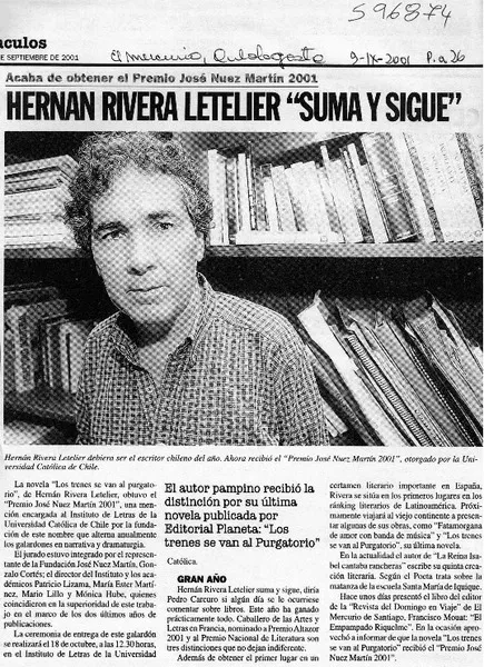 Hernán Rivera Letelier "suma y sigue" [artículo].