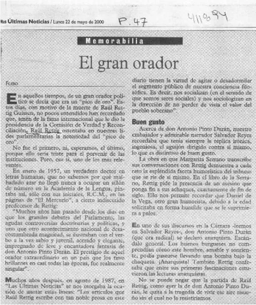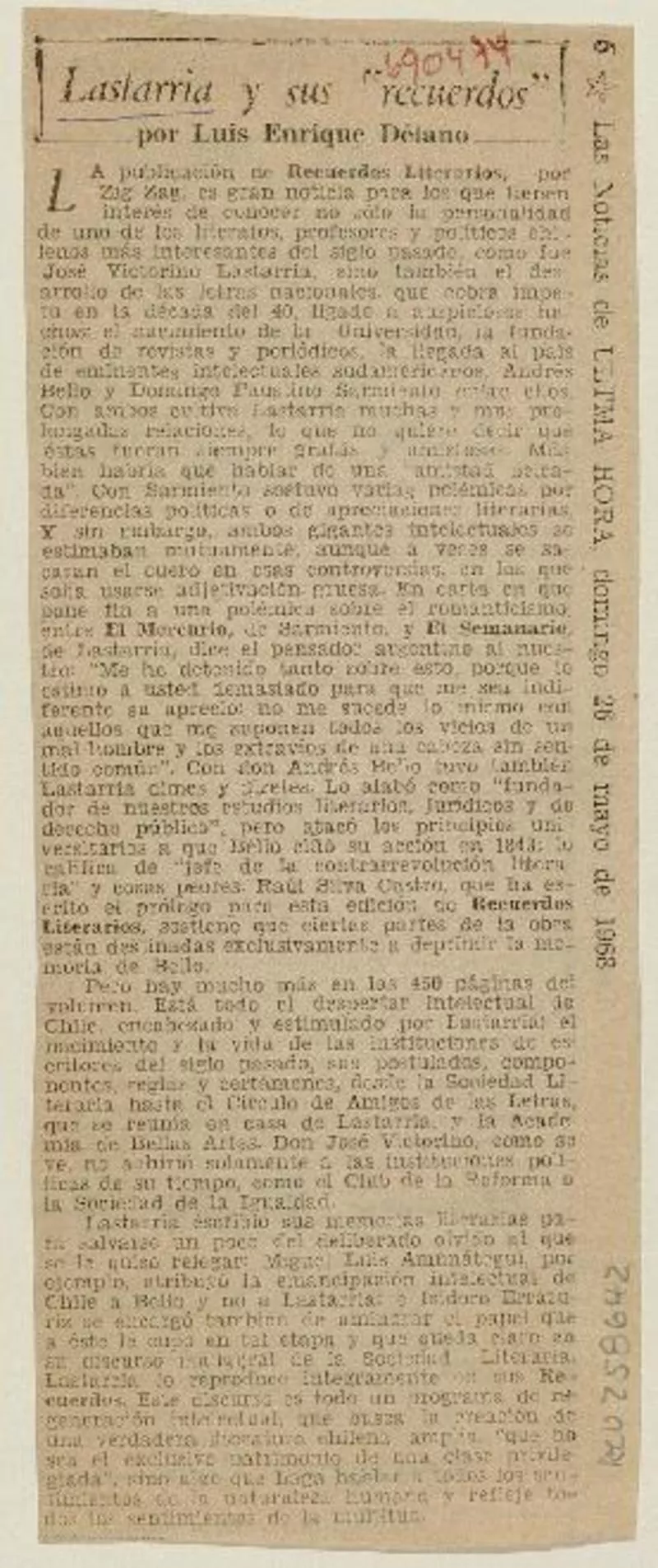 Lastarria y sus "recuerdos" [artículo] Luis Enrique Délano.