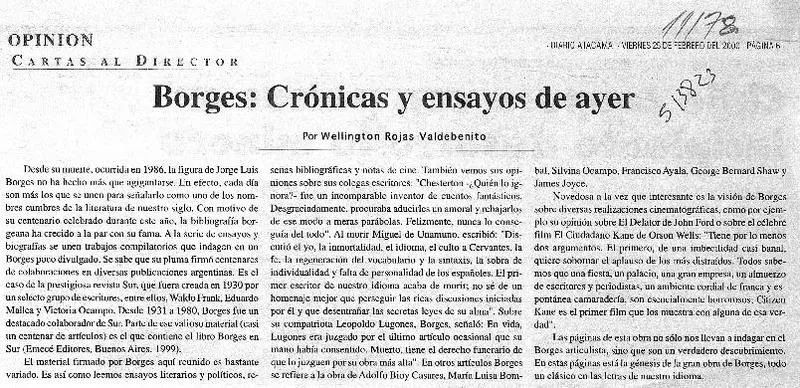 Borges : crónicas y ensayos de ayer [artículo] Wellington Rojas Valde...