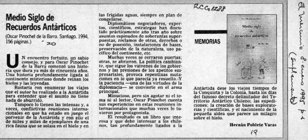 Medio siglo de recuerdos antárticos [artículo] Hernán Poblete Varas. ...