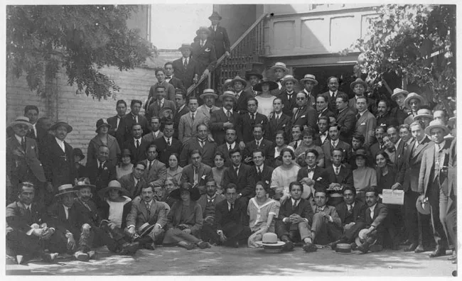Positivo papel copia, monocromo, estructura formal retrato de grupo, e...