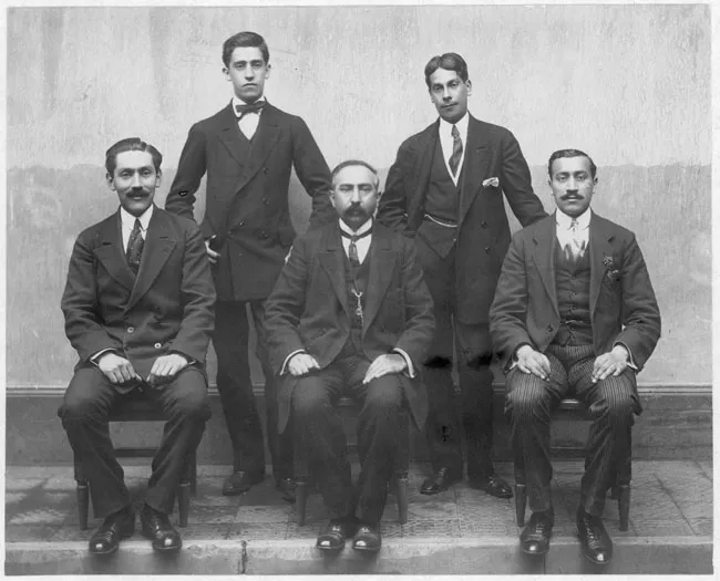 Positivo papel copia, monocromo, estructura formal retrato de grupo, e...
