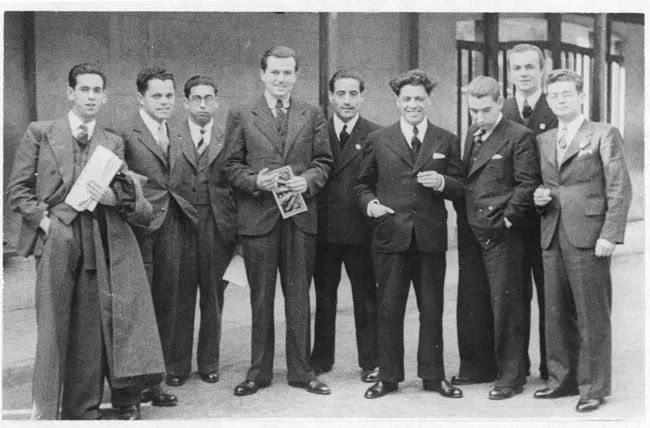 Liceo de Aplicación, grupo de ex alumnos acompañados por el profesor Pinilla, 1942