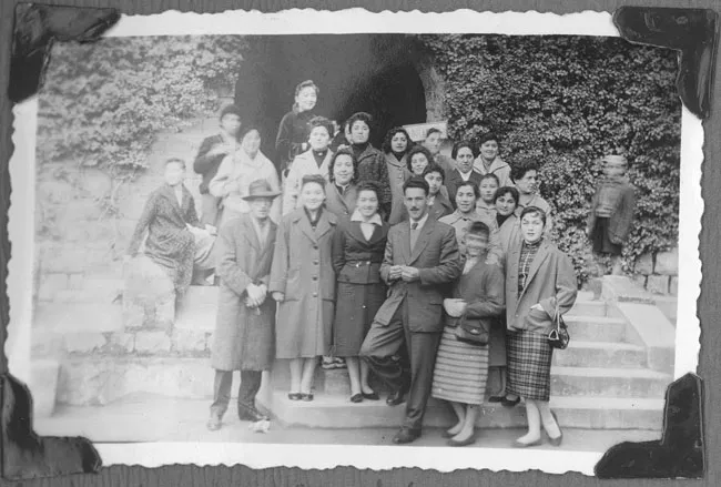 Positivo papel copia, monocromo, estructura formal retrato de grupo, e...