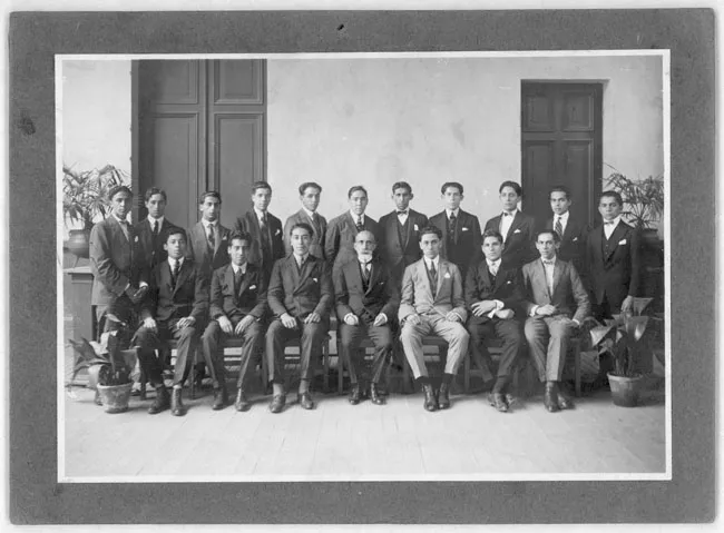 Positivo papel copia, monocromo, estructura formal retrato de grupo, e...