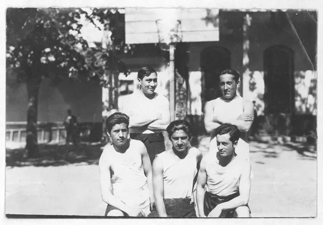 Positivo papel copia, monocromo, estructura formal retrato de grupo, e...