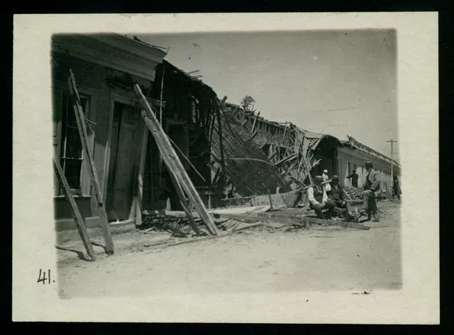Hombres frente a los escombros