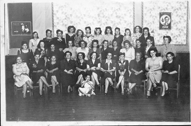 Retrato grupal femenino Grupo de treinta y cinco damas adultas y una niña sentada en el suelo,... 03SDF-25-6758